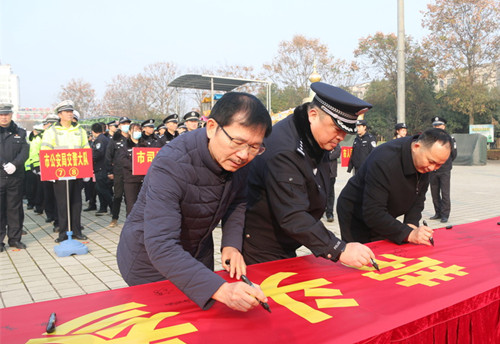 活动还向全市执法人员发出了“带头参与文明交通行动,模范遵守交通法律法规”的倡议。参加活动的全体执法人员在启动仪式上郑重宣誓,并在横幅上签名。