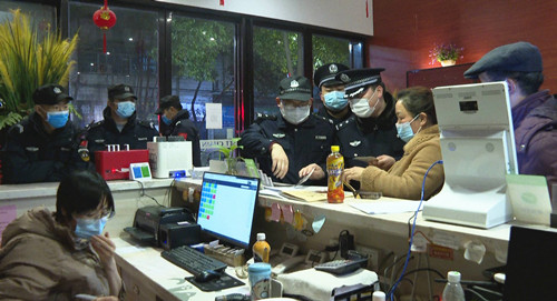 1月26日晚,市公安局组织刑侦大队、治安大队、禁毒大队、巡特警大队和城区三个派出所民(辅)警,对城区宾旅馆、娱乐服务场进行“毒黄赌”专项清查,对新冠肺炎疫情防控、消防安全和实名制登记情况进行检查。