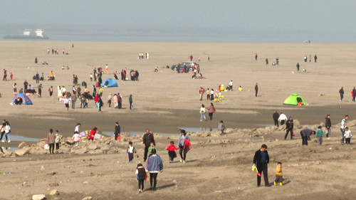 离城区不到二十公里的江南镇坐拥38.5公里长江岸线。在蓝天白云下,这里笔直的江岸线,直冲云霄,退潮后的江滩,犹如满地碎银,晶莹剔透。春节假期期间,每天都有不少“候鸟”游客来此游玩漫步,呼吸新鲜的空气,感受温暖的阳光,享受暖冬之旅。