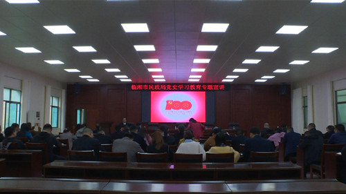 会上,市委党校副校长姚笛新应邀以《学深悟透百年史 砥砺奋进新征途》为题,从“习近平总书记关于党的历史的重要论述,中国共产党百年奋斗的光辉历程和历史贡献,把百年党史与湖南、岳阳巨变联系起来”等方面,给市民政局全体干部职工上了一堂内涵丰富、主题鲜明的党史学习教育课。