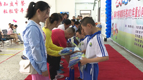 “用心点燃希望,让爱播撒人间。”在为孩子们分发酸奶、校服等生活物资后,爱心志愿者与老师还引导孩子们共同体验了“两人三足”等趣味游戏。