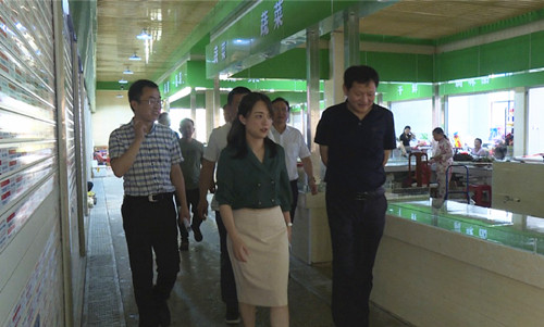 在长塘镇托坝农贸市场,袁康实地查看农贸市场经营布局、排水排污、消防安全等情况,详细了解了市场提质改造进展,现场指导市场提质改造工作。