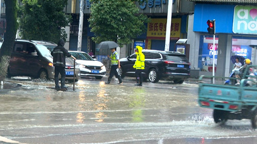 7月2日上午9时,记者在中心城区路中夏家巷、西正街兴农巷等路段看到,公路出现了不同程度的积水,不少地方积水深度没过了车轮胎,涉水车辆缓慢行驶,行人也大多选择穿着凉鞋挽起裤腿蹚水出门,深水处几乎没过膝盖。
