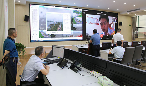 在市应急综合指挥中心,刘琦仔细查看全市实时水文水情监测预警情况,通过视频连线详细了解各镇(街道)应急值守、防汛措施落实等工作,并现场与气象、应急等部门负责人会商,安排部署当前防汛工作。