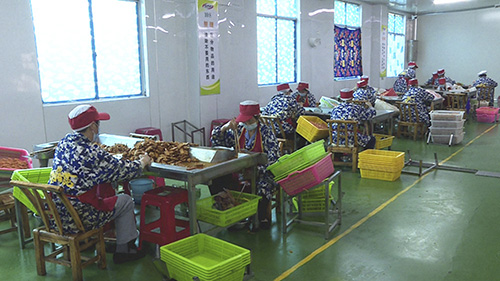 在公司包装车间,工人们正在紧张有序地将一包包“豆制品”经过分拣、包装、称重、装箱后,交给车间统一销售。