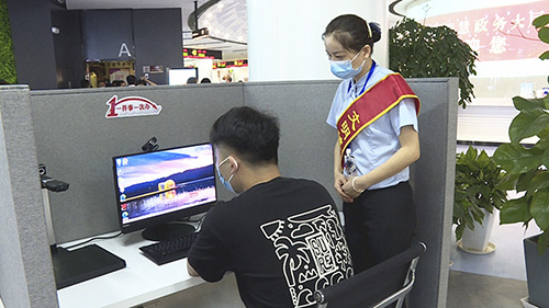 10月12日上午,市民骆先生通过网上预约来到市智慧政务服务大厅办理相关业务,经过体温测量,查验行程码、健康码后进入服务大厅。在工作人员的指引下,他来到自助服务区的电脑前,打开临湘政务服务网,前后不到5分钟,他就拿到了相关证件。
