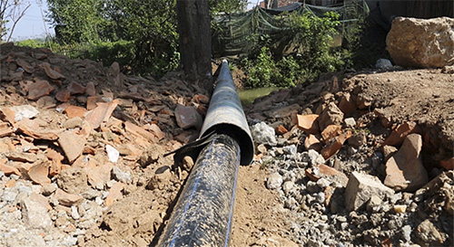 在黄盖镇广坪村广坪组,工人们正在加紧施工,将崭新的管道埋入挖好的沟渠中。群众时不时就会来关注下施工进度,这是他们期待已久的自来水管网改造工程。