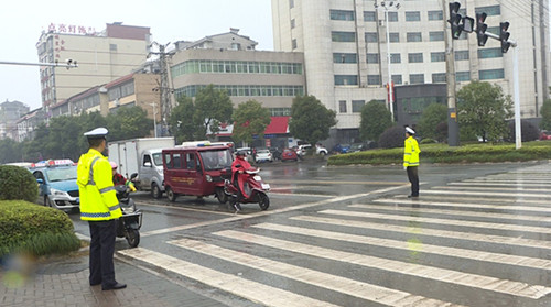 11月4日上午,在南太路与107国道交叉路口,一位未戴头盔的男子开着一辆三轮摩托车,车上拖载着20多根长约五、六米的水管。正在冒雨值勤的交警立马将其拦住,反复耐心地对其进行道路安全教育,并多次拒绝该男子的说情请求,秉公作出相关处罚。