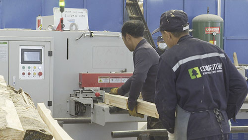 湖南中栊木业有限公司副总经理葛成龙 :“目前1车间已经在满负荷生产,2车间将在这个月月底之前完成设备安装和调试,下个月的生产总量大概能翻一番,每天大概在一千个立方左右。”