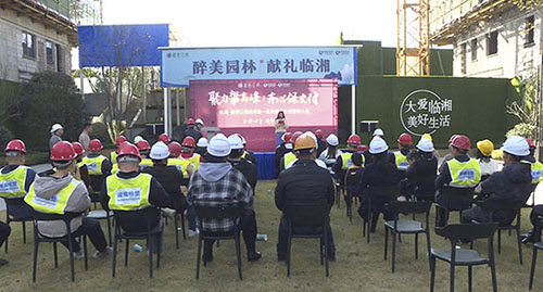 12月19日,临湘·桂语江南在售楼部举行誓师大会,动员各参建单位统一思想,迎难而上,全力确保项目第一批楼盘达成完美交付。