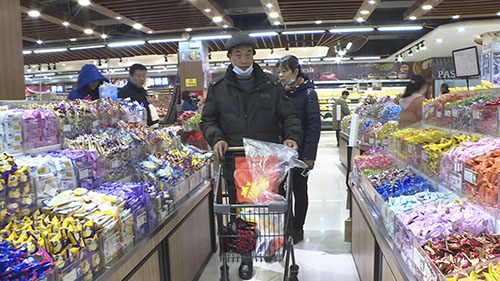 新富食村副总经理来青文:“目前,我们特从全国各地采购了大量物美价廉的商品,保障两节期间市场供应,大家可以放心购买。”
