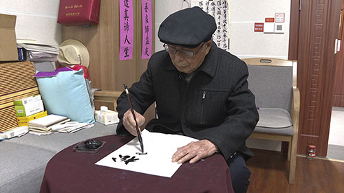 福利中心入住老人陈庆胜:“养老入住福利院,牛年快完到虎年,日握三宝随左右,夜作诗词伴深眠。”