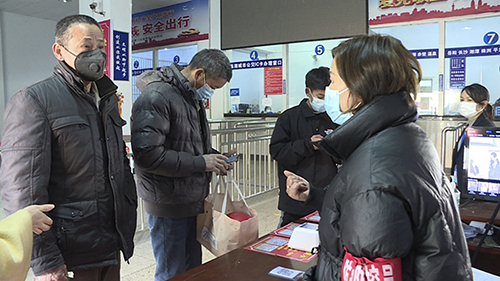 在市龙鑫公司汽车站进站口,记者看到,汽车站工作人员积极劝导旅客佩戴好口罩,并为他们测温验码,登记相关信息,有序地引导进站。