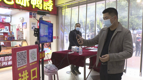 在临湘大市场,前来购物的顾客也络绎不绝。大市场严格按照疫情防控要求,对每一位进场的顾客进行扫码、测体温,设置“一米线”提示,同时开放老年人登记通道,为不会使用智能手机的老年人进行登记。市场内,工作人员时刻提醒大家带好口罩、有序购物,全力为消费者营造安全、健康、放心的购物环境。