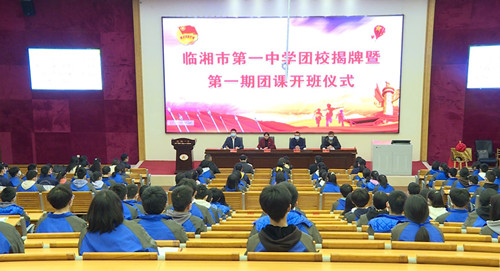 仪式上,杨善和市教体局负责人为“临湘市第一中学团校”揭牌。市一中负责人以“如何做一名优秀共青团员”为题,为团校学员讲授了开班第一课。