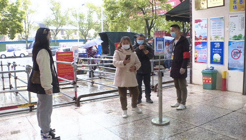 在长安农贸市场入口处,长安市场管理所工作人员热情耐心引导前来采购的市民亮“码”测温,有序进入市场。市场内,无论是从业人员还是顾客都自觉佩戴口罩,遵守疫情防控规定,现场秩序井然。