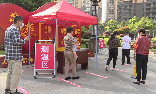 此次演练采取实景设置、真人参与、实际操作的方式进行,设有测温区、登记区、采样区等区域,演练对象为嘉年华小区业主共计300余人。