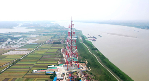 螺山长江大跨越工程项目部总工程师牛孜强:“截至目前,跨越塔已组立到257米,预计月底跨越塔主体全部组立完成。我们计划8月开始架线施工,10月底投运。该工程投运后,将电力清洁能源源源不断输送到湖南,将有效缓解湖南用电紧张难题。”