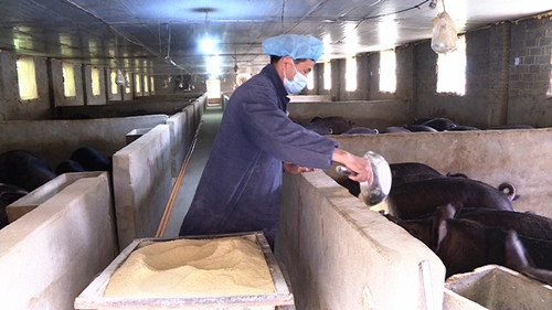 在白羊田镇双泉村扬德生态黑土猪养殖基地,养殖员正忙着将优质玉米、豆粕、麸皮等原料进行粉碎混合,送往猪圈投喂黑土猪。由于采用原粮喂养,这些黑土猪不见大腹便便,每头都显得格外健壮。
