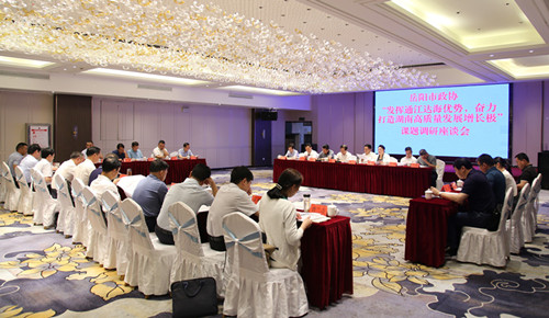 6月13日,岳阳市政协“发挥通江达海优势 奋力打造湖南高质量发展增长极”课题调研座谈会在我市举行。岳阳市政协主席、党组书记黎作凤,副主席秧励、刘铁健、范泽容,我市领导王文华、刘琦、易兴建、彭海云等参加。