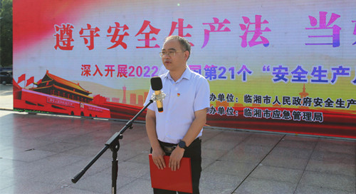 为营造安全生产浓厚氛围,推动落实安全生产责任,全面提升全民安全素养,6月16日上午,我市开展以“遵守安全生产法 当好第一责任人”为主题的2022年“安全生产月”宣传咨询日活动。市委副书记、市长刘琦出席活动并致辞,市安委会各成员单位参加活动。