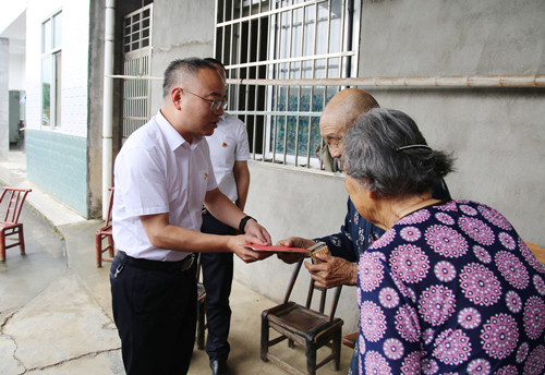 在洋溪村老党员、老村干部陈文亮家中,刘琦关切地询问其身体状况和家庭情况,并叮嘱他要保重身体、安享晚年。