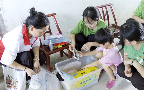 会后,在市青年志愿者协会工作人员带领下,志愿者们来到留守儿童家中,陪孩子聊天谈心,将承载着爱的礼包送到孩子手中。