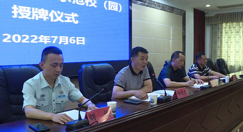 会上,市退役军人事务局负责人和市教体局负责人为“双拥”示范校园市一小、市六中、市机关幼儿园授牌。
