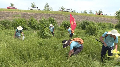 在长江岸线江南镇鸭栏码头段,鲜艳的旗帜迎风飘扬,一支由首都高校在校大学生组成的“志愿服务队”分散在长江大堤沿岸,捡拾草丛中的塑料瓶、碎纸屑、废弃物等白色垃圾,用实际行动“守护好一江碧水”,成为最美长江岸线一道靓丽的风景线。