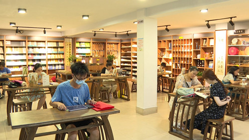 大学生小姚:“我是大学刚毕业的学生,计划在今年12月份考研,暑假期间来新华书店学习,这里的学习氛围很好,这里有资料供给自己学习,使自己的学习效率大大提高。”