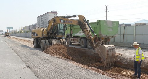走进G107临湘福桥路段施工现场,一台台挖掘机、铣刨机正在对原路面基层进行挖补回填作业,施工人员挥舞着铁耙,将路面碎石铲铺均匀,呈现出一片热火朝天的繁忙景象。