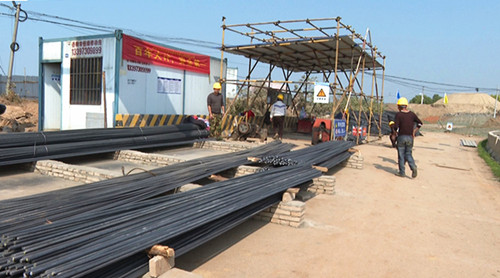 走进施工现场,挖掘机、喷桩机马达轰鸣,工人们各司其职抓紧施工,现场不时传来打磨钢筋的声音,一派繁忙景象。