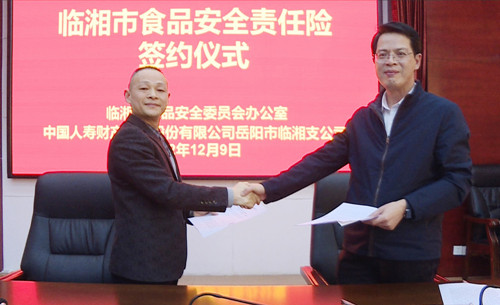 12月9日下午,市食安办和中国人寿财产保险股份有限公司岳阳市临湘支公司正式签约,为全市高中、初中、小学学生和幼儿园幼儿以及集体聚餐人员购买食品安全责任保险。预计46万人受惠。