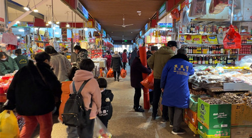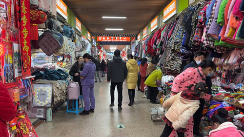 市场内各摊位上的炒货糖果、大红灯笼、衣服鞋帽、装饰日用等食品及生活用品琳琅满目、货源充足,洋溢着浓浓的年味儿……人们纷纷扶老携幼来到市场里购置年货,呈现出一派红红火火赶大集的欢乐景象。