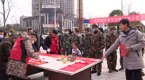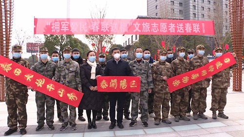 1月17日下午,我市在文化艺术中心广场开展“拥军爱民”春联送福活动,以翰墨传递温暖,为退役军人和市民们送上新年祝福。