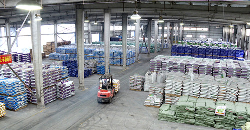 走进金叶众望公司生产车间,只见各条自动生产线高速运转,传送带上的化肥堆放整齐,一辆辆叉车往来穿梭装运化肥,工人们正忙着打包、装车,一片繁忙景象。