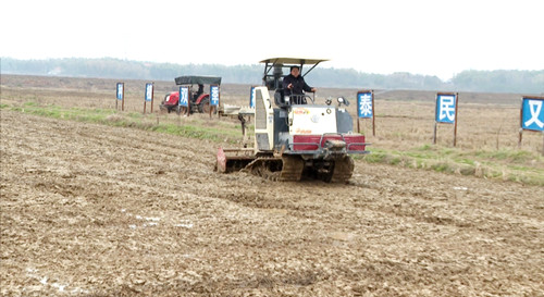 定湖村种粮大户黄达清 :“今年我流转了580亩水田,准备全部种植双季稻,今天趁着天气好,搞了几台旋耕机,把秧田都打出来,为今年的集中育秧做准备”。