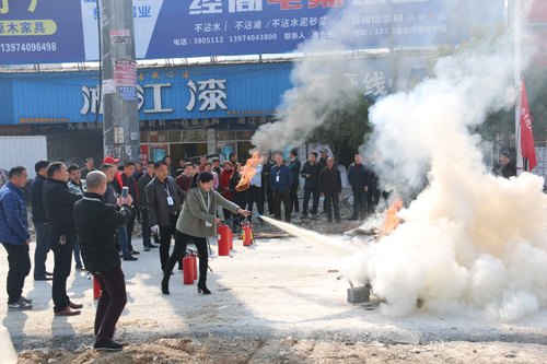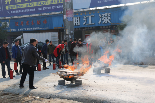 演练按照预定的方案进行。某天,市场一油漆店发现火情,油漆店内烟雾弥漫。接警后,演练人员戴好防毒面罩,兵分几路,在组织大家进行紧急疏散的同时,迅速关闭总电源,接好消防水带扑灭火险。此外,市场管理所还组织工作人员和经营户进行了干粉灭火器以及消火栓的实战演习,参训人员精神饱满,严谨认真,有序的完成了预定演练任务。