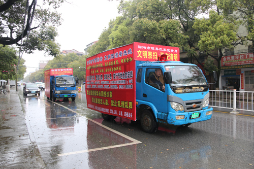 活动中,市民政局通过宣传栏和流动宣传车等方式在全市范围内,大力宣传《关于推行节地生态安葬的指导意见》和《关于党员干部带头推动殡葬改革的意见》。倡导全市人民,树立新丧葬观念,摒弃传统陋俗,营造殡葬改革的舆论氛围。号召党员干部,要起到示范带头作用,以党风政风带动民风,提升民政部门的服务水平,推动殡葬改革的健康发展。同时向市民宣传,清明节要绿色、文明、低碳、平安祭扫,不在林区、景区等禁火区域焚烧纸钱、燃放鞭炮,提倡用鲜花、植树绿化、踏青遥祭等方式来缅怀故人,引导人民群众过一个文明而有意义的清明节。