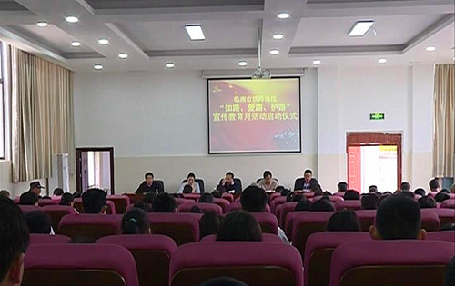4月17日上午,由市综治委护路护线联防专项组组织的“知路、爱路、护路”宣传教育月活动启动仪式在市八中举行。市委常委、政法委书记胥春华出席,市护路办、团市委、市教体局等部门单位相关负责人参加。
