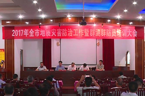 5月16日上午,全市2017年地质灾害防治工作暨群测群防员培训大会召开。市委常委、统战部部长李其报,市政府副市长吕乐出席会议,市应急办、气象局与各镇(街道)负责人以及地质灾害隐患点群测群防人员参加会议。