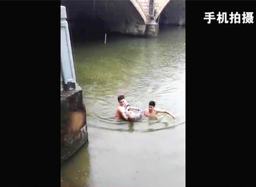 目击者刘劲松说:“两个年轻人毫不犹豫地下水去施救,把老人成功救上来了。这种行为应该值得社会弘扬和学习,我们在此为他们点赞。”