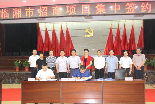 5月27日,我市举办“岳阳港临湘港区”和临湘汽贸大市场两大项目集中签约仪式。武汉港航发展集团有限公司党委书记、董事长谢宗孝,湖南和立东升控股集团董事长冯卫兵,华菱岳阳港总经理鄢志平等客商代表,市领导李美云、魏淑萍、余岳雄、魏新咏、凌晓明、李孟阳、孙少游、彭海云、李征雷等出席签约仪式。