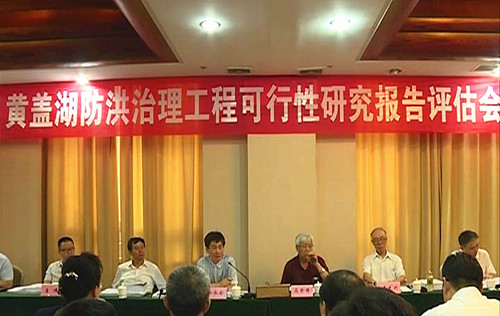 通过实地勘察后,6月10日,专家组成团就黄盖湖防洪治理工程的可行性召开研究报告评估会。
