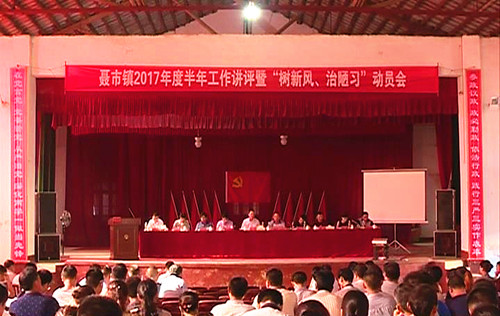 日前,聂市镇召开2017年度半年工作讲评暨“树新风、治陋习”推进会。