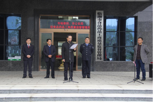 11月24日上午,市检察院、市公安局驻市食品药品工商质量监督管理局检察联络室、案件侦查室正式揭牌成立。市委常委、市政法委书记胥春华,市政府副市长刘如乐,市政府副市长、市公安局局长邓可杰,市检察院党组书记、检察长吴春生,市食药工商质监局党组书记、局长汤其加出席仪式。揭牌仪式由市政府办公室副主任李美波主持。