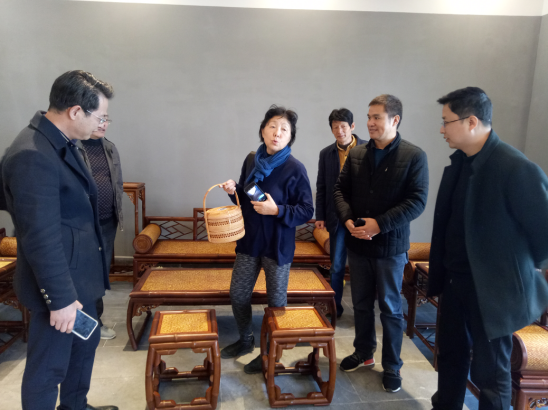 李美云书记在羊楼司镇竹艺城向考察人员介绍情况