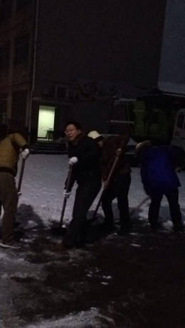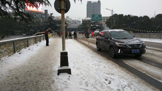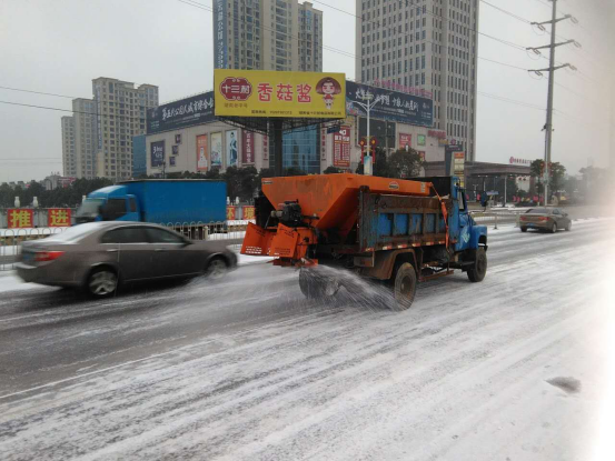 临湘市环卫局今天又集中组织了100多名干部职工,从早上5:00到12:00,对城区主干道进行了撒盐除雪,清理了湘北大道、长五路、永昌路的主要桥梁的机动车道和人行道及周边涵洞和人口密集重要地段的积雪。