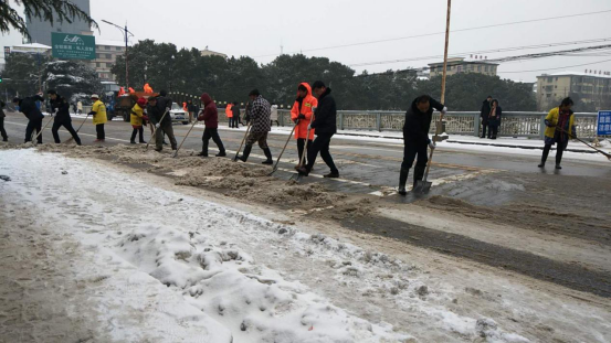 近几天来,临湘纯雪、冰雪、冻雨交替,我市环卫部门积极落实临湘市低温雨雪冰冻天气Ⅲ级应急响应,加班加点清理城区主要道路积雪,确保了道路无冰冻积雪,市民出行安全。