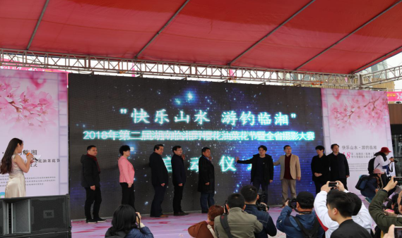3月17日,由湖南省摄影家协会、临湘市全域旅游发展领导小组、中国摄影家网主办,临湘市文化旅游广电新闻出版局、临湘美临文化旅游发展投资有限公司、岳阳市摄影家协会等承办的“快乐山水、游钓临湘”2018第二届湖南临湘野樱花油菜花节暨全省摄影大赛在临湘国际垂钓中心启动,临湘市人民政府副市长熊丽在启动仪式上致词,摄影协会、媒体等代表发言。启动仪式上湖南省摄影家协会授予临湘野樱岭万亩野樱花为湖南摄影创作基地,中国摄影家网授予临湘野樱岭万亩野樱花为摄影创作基地。